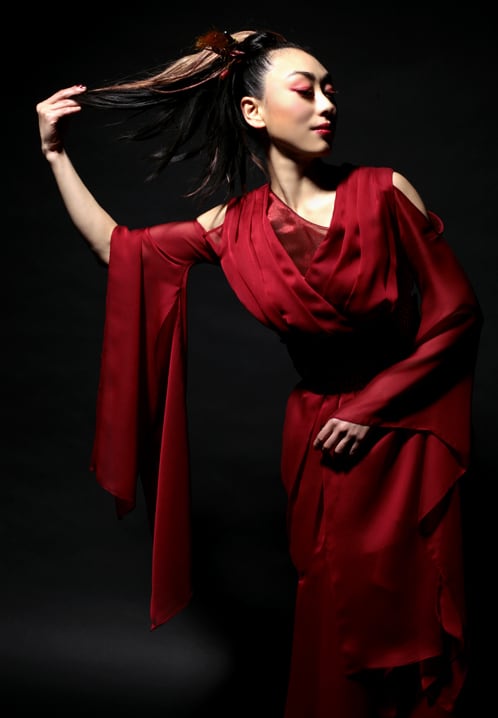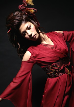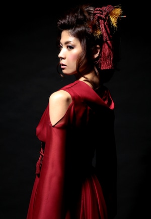日本の伝統美である“着物”のエッセンスを一部に取り入れながら、ドレスとしての華やかさと自由さを融合させました。